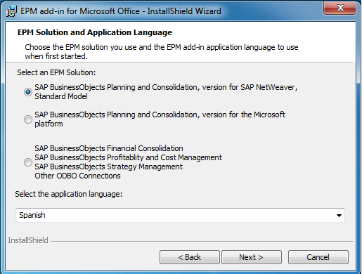 SAP EPM Add-In 10.0 SP27 es .NET 4.5