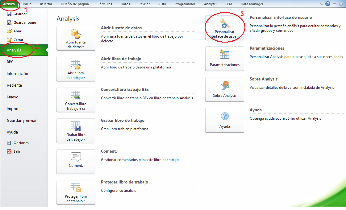Habilitar opciones de planificación en Analysis for Office 2.4
