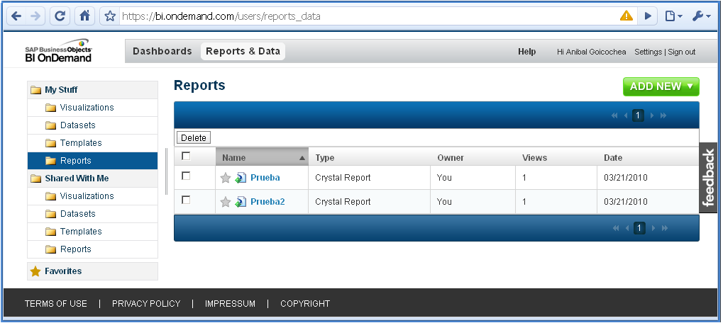 Vemos la plataforma como una evolución de crystalreports.com, que por cierto, si se tiene un usuario en este sitio, se podrá utilizar en SAP BO BI OnDemand. Seguro que habrá una próxima versión, porque creemos que esta un poco lejos de los deseos de SAP, de que BI OnDemand sea considerada como una plataforma única de Business Intelligence bajo filosofía SaaS que requieran los usuarios.