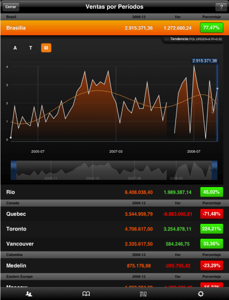 Actualmente, con SAP BI Mobile, podemos visualizar documentos de Web Intelligence, visualizaciones de Dashboards (Xcelsius), informes de Crystal Reports y contenido de Desing Studio.