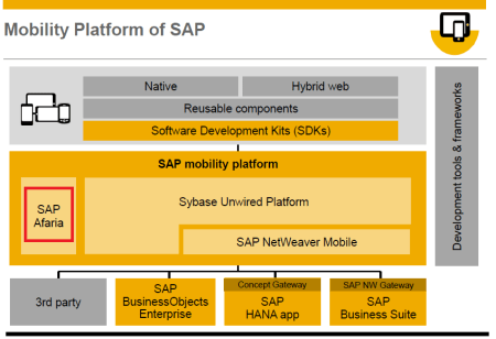 Quizás muy pocas veces hayas escuchado este nombre, pero su popularidad debería crecer en la misma proporción que los dispositivos móviles sigan ganando terreno en los procesos de negocio de las organizaciones. SAP Afaria es un componente de la propuesta mobile de SAP, encaja en la categoría Mobile Device Management (MDM), aplicaciones que tienen la finalidad de gestionar el despliegue mobile de las empresas cubriendo básicamente tres aspectos: Dispositivos, Aplicaciones y Seguridad.